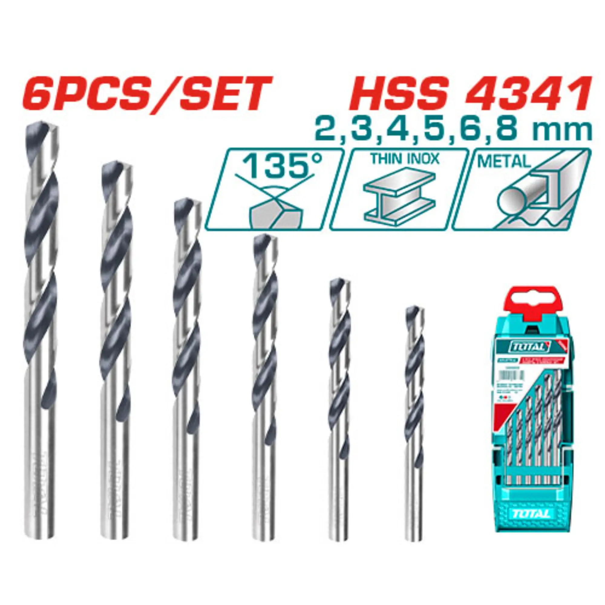6pcs HSS 4341 drill bits set